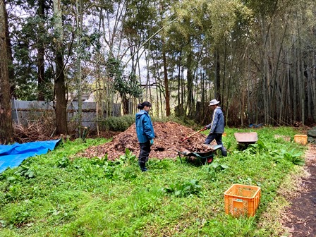今回のメイン作業は、堆肥づくりになります。山から集めた枯葉や